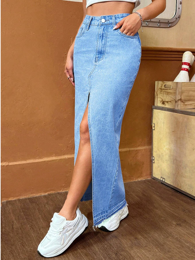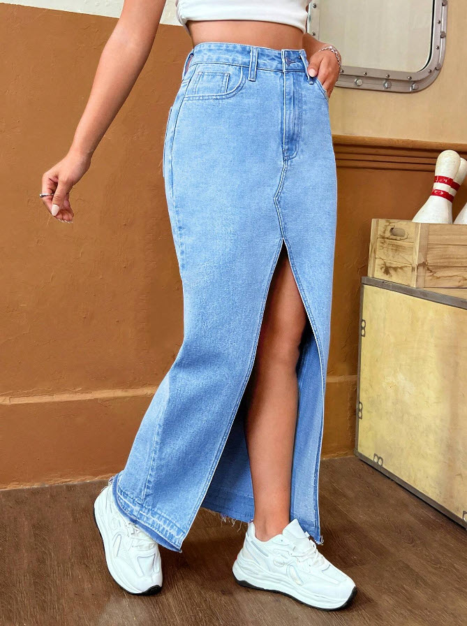 دامن جین بلند چاکدار