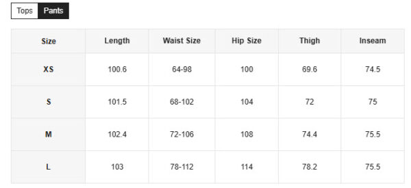 XS, S, M, L |