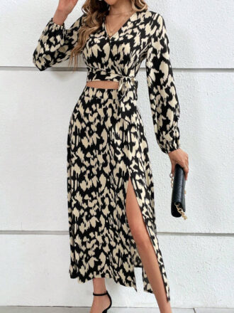بلوز با آستینبلند و کش کمری و دامن بلند