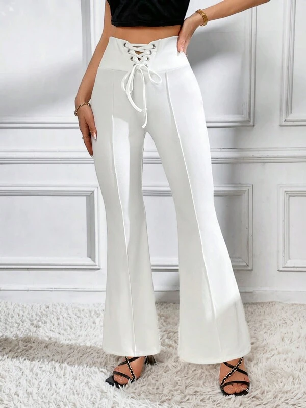 شلوار با جلوی بسته و پاهای گشاد.