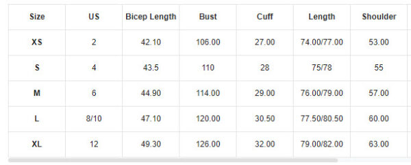 XS, S, M, L, XL |