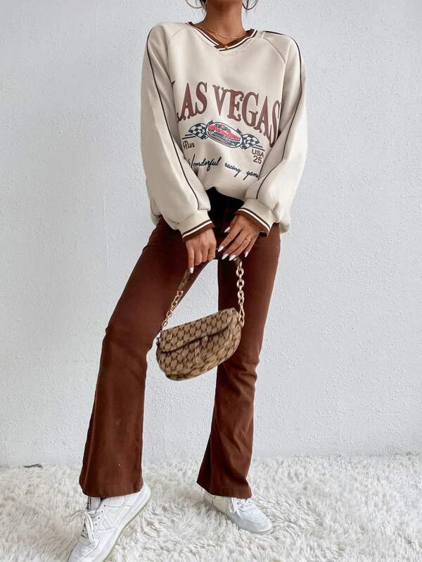 پولیور با طراحی حروف و چاپ خودرو آستین رگلان